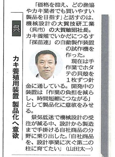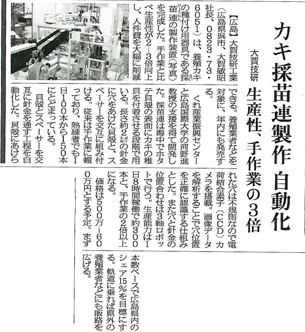 「ひろしまベンチャー奨励金(銀賞)」受賞(牡蠣筏固縛工具)